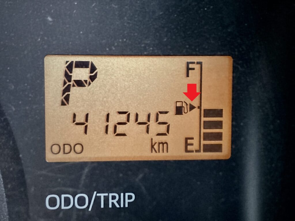 じつは給油口の位置は、燃料ゲージ横の給油マークについている矢印の向きで表示されています。(アナログゲージでも同様です。)